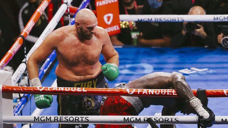 Tyson Fury knocks out Deontay Wilder in the 11th round of their WBC Heavyweight World Championship fight at T-Mobile Arena in Las Vegas