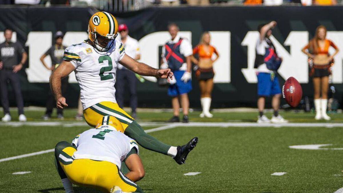 Green Bay Packers kicker Mason Crosby makes a field goal against the Bengals in Cincinnati)