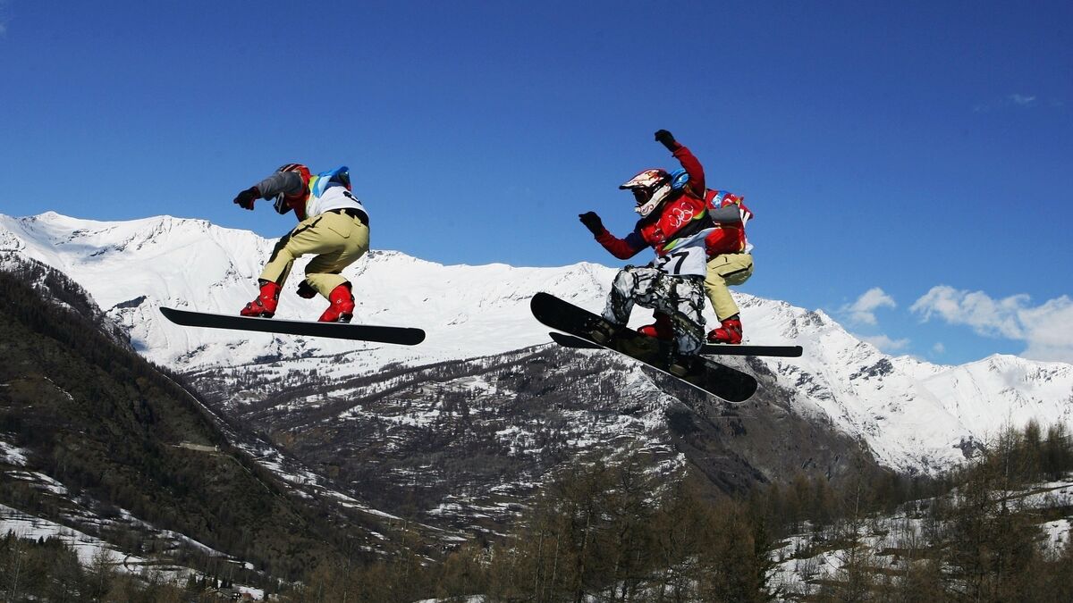 A general view of action during the Mens Snowboard Cross Qualifying on Day 6 of the 2006 Turin Winter Olympic Games. Picture: Getty Images