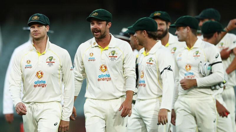 Australia's Steve Smith (left) and Travis Head after clinching a 2-0 series lead at the Adelaide Oval