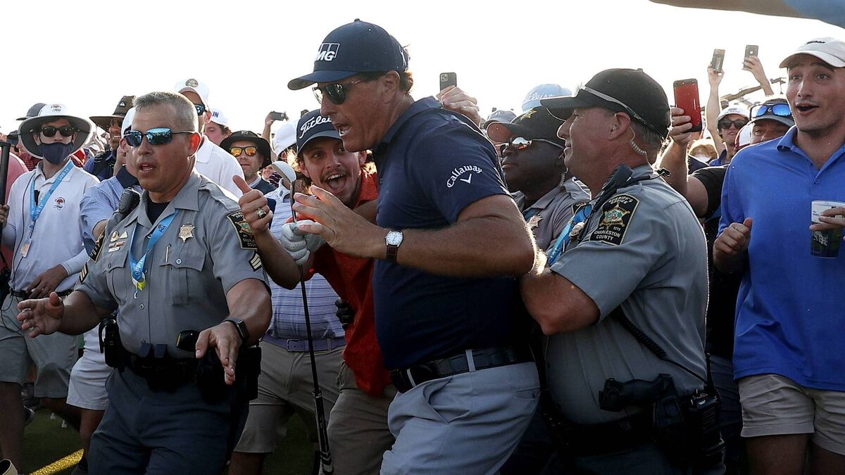 NIFTY AT FIFTY: Phil Mickelson battles through the galleries as he walks up the 18th fairway to close out a remarkable PGA Championship title, becoming the oldest golfer to win a major.