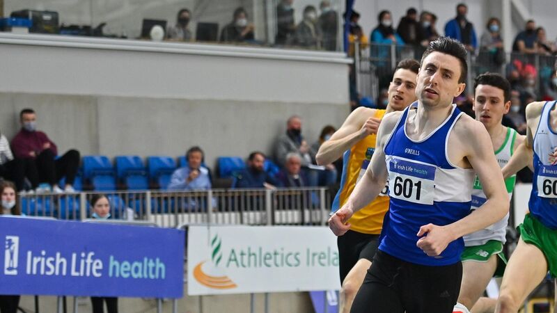 Mark English of Finn Valley AC in action in the Irish Life Health National Senior Indoor Athletics Championships