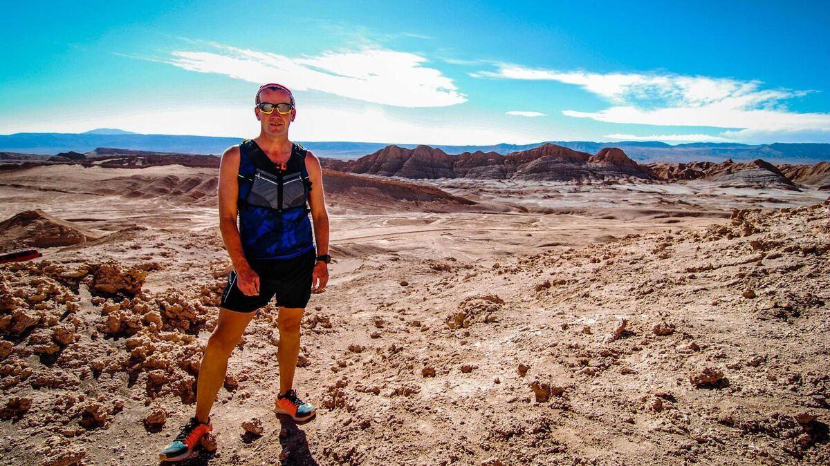 Call of the wild: Richard Donovan midway through a run in the Atacama Desert in Chile, where the Galway native organises the Volcano Marathon.