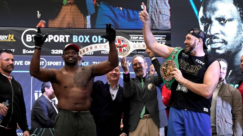 All smiles now: Tyson Fury (right) and Dillian Whyte have avoided the animosity in the build-up to Saturday's bout at Wembley. Photo: Nick Potts/PA Wire.