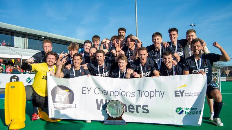 Lisnagarvey celebrate winning the EY Champions Trophy. Pic courtesy of Hockey Ireland