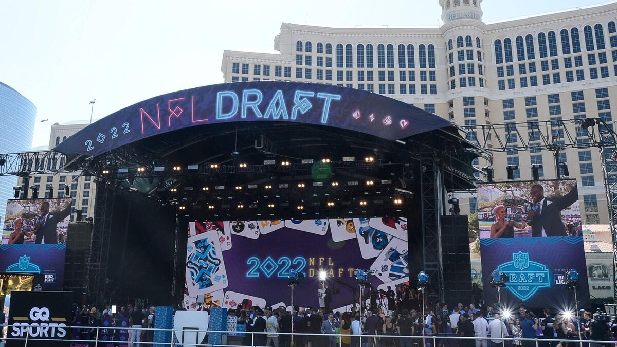 LAS VEGAS, NEVADA - APRIL 28: View of the 2022 NFL Draft Stage at the Bellagio Hotel & Casino on April 28, 2022 in Las Vegas, Nevada. (Photo by Mindy Small/Getty Images)