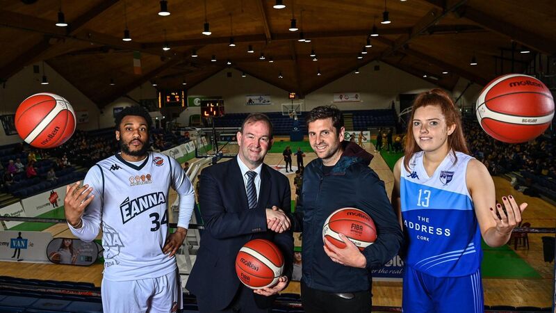 Fresh approach: In attendance at the announcement of a 5-year OTT agreement for the National League are, from left, Josh Wilson of DBS Éanna, Basketball Ireland Chief Executive Officer John Feehan, Joymo Chief Executive Officer Michael Emery, and Claire Melia of The Address UCC Glanmire.