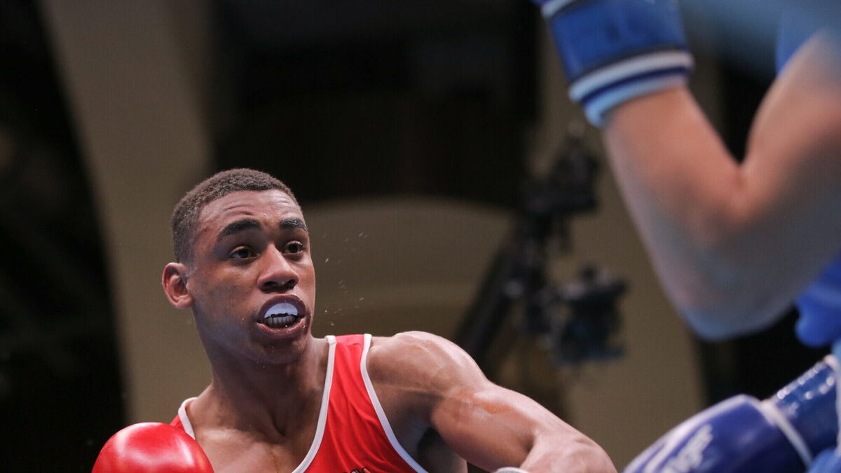 Gabriel Dossen, of Ireland, during the EUBC Elite Men's European Boxing Championships Preliminary Rounds against Rami Mofid Kiwan, of Bulgaria, at Karen Demirchyan Sports and Concerts Complex in Yerevan, Armenia. Photo by Hrach Khachatryan/Sportsfile