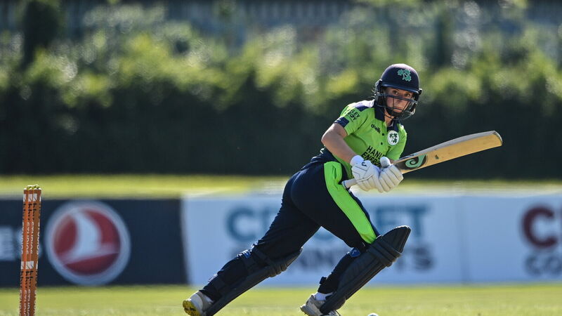 3 June; Leah Paul of Ireland plays a shot during the Women's T20 International match between Ireland and South Africa at Pembroke Cricket Club in Dublin. Photo by Sam Barnes/Sportsfile