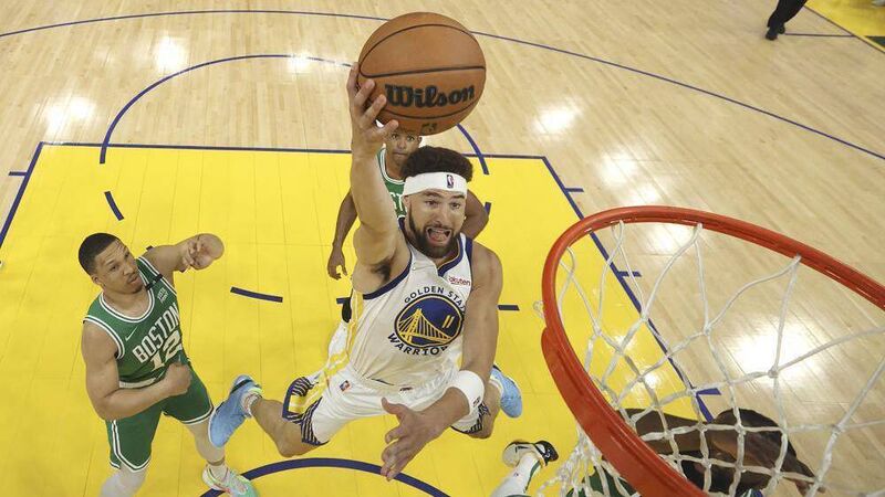 UP THERE: Golden State Warriors guard Klay Thompson (11) drives against the Boston Celtics in Game 2 of basketball's NBA Finals in San Francisco