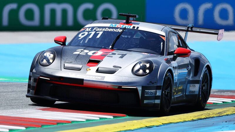 SPIELBERG, AUSTRIA - JULY 03: Michael Fassbender of Ireland and Porsche Motorsport (911) drives during qualifying ahead of round 3 of the Porsche Mobil 1 Supercup at Red Bull Ring on July 03, 2021 in Spielberg, Austria. (Photo by Bryn Lennon/Getty Images)
