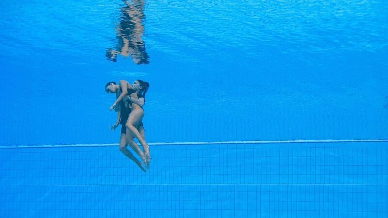 RESCUE OPERATION: USA's Anita Alvarez is recovered from the bottom of the pool by a coach after passing out during the women's solo free artistic swimming final at the World Aquatics Championships in Budapest