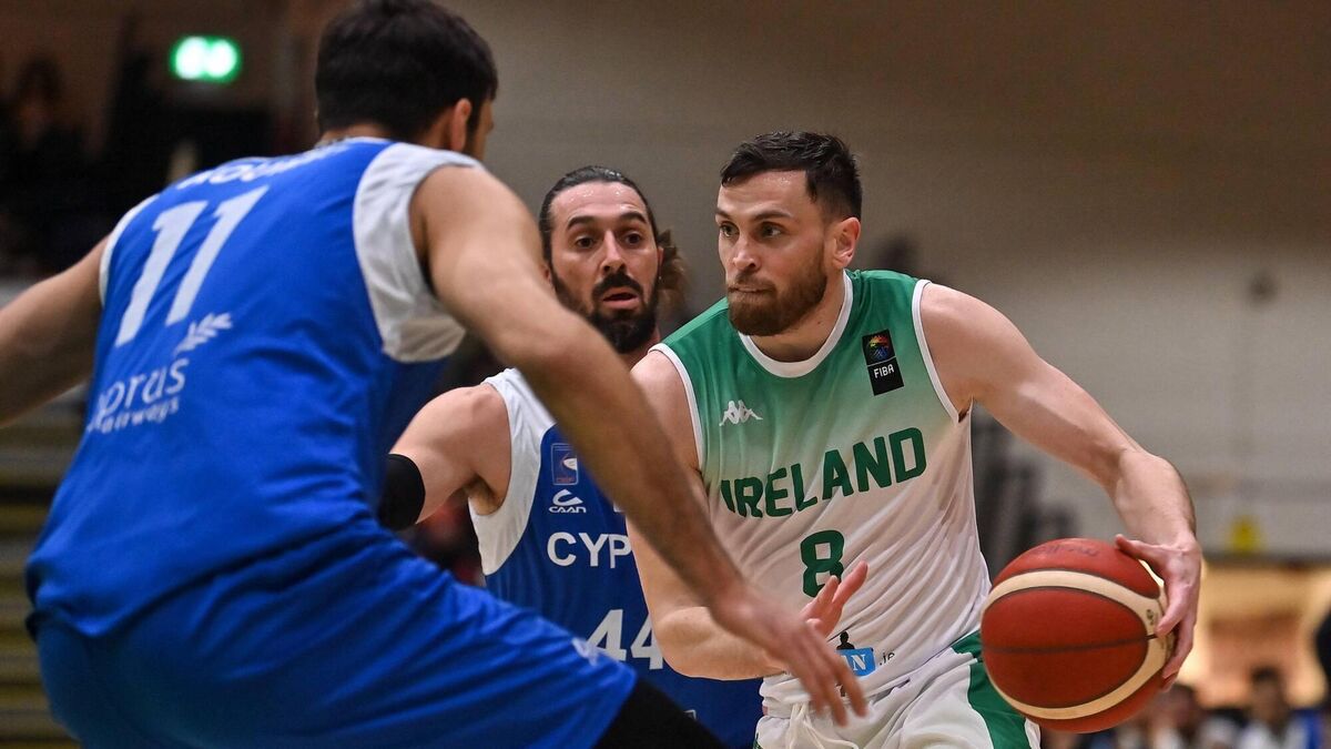 HANGING UP HIS SNEAKERS: Kyle Hosford of Ireland in action against Iakovos Panteli of Cyprus during the FIBA EuroBasket 2025 Pre-Qualifiers First Round Group A match between Ireland and Cyprus at the National Basketball Arena in Tallaght, Dublin. Pic: Brendan Moran/Sportsfile