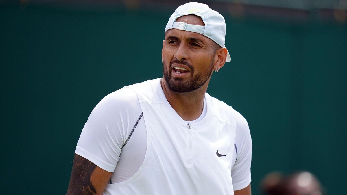 SPITTING MAD: Nick Kyrgios during his match against Paul Jubb on day two of the 2022 Wimbledon Championships at the All England Lawn Tennis and Croquet Club, Wimbledon. Pic: Adam Davy/PA Wire.