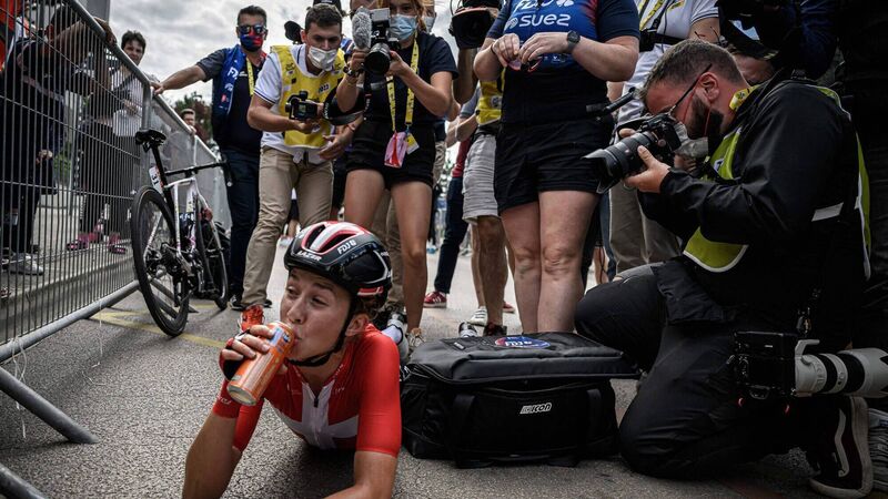 The Dane, in tears of despair after crashing and losing time on stage two, was in tears again, but this time of joy after her explosive acceleration took her clear of Vos in the last 100m. It is hard to imagine a more exuberant winner in the long history of the Tour de France.
