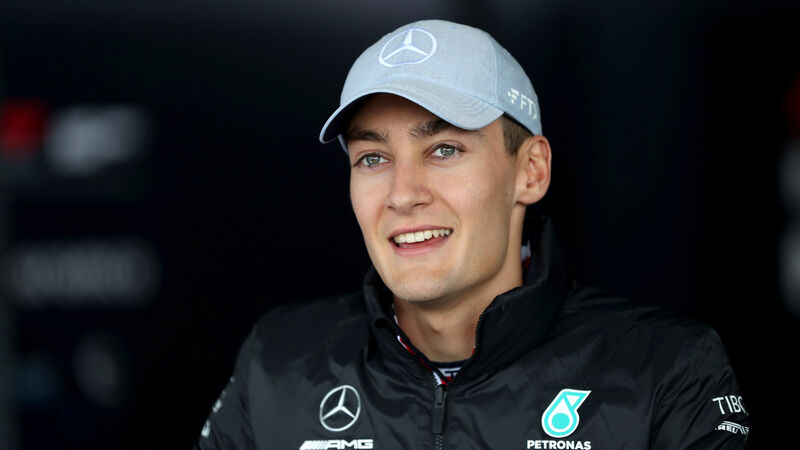 IN POLE: Mercedes' George Russell selaed a career milestone.