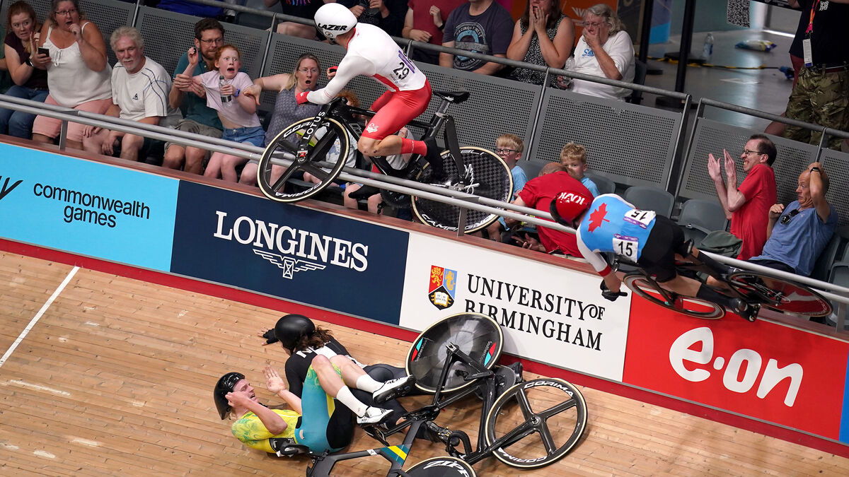 England’s Matt Walls was involved in a terrifying accident at the Commonwealth Games on Sunday morning when he was catapulted over the barriers and into the crowds at the Lee Valley VeloPark.