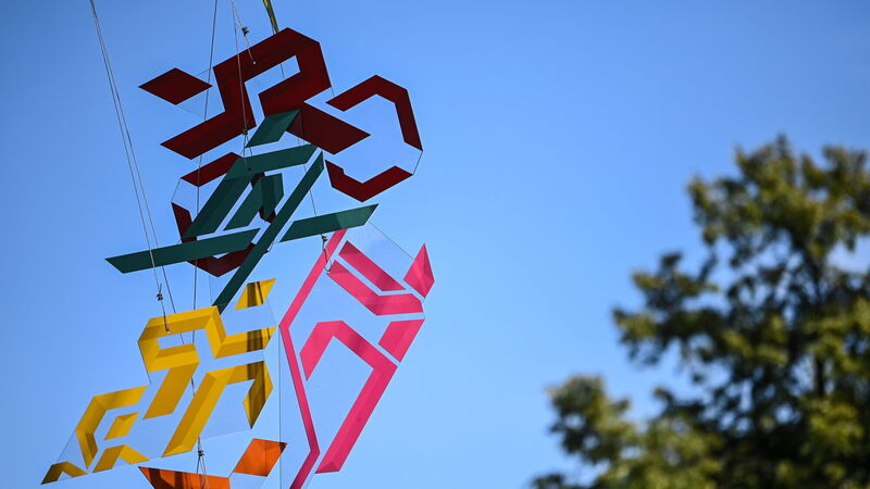 READY FOR TAKE-OFF: Signage representing the various sports hang from the roof inside the Olympiapark before the European Championships 2022 in Munich, Germany. Photo by David Fitzgerald/Sportsfile