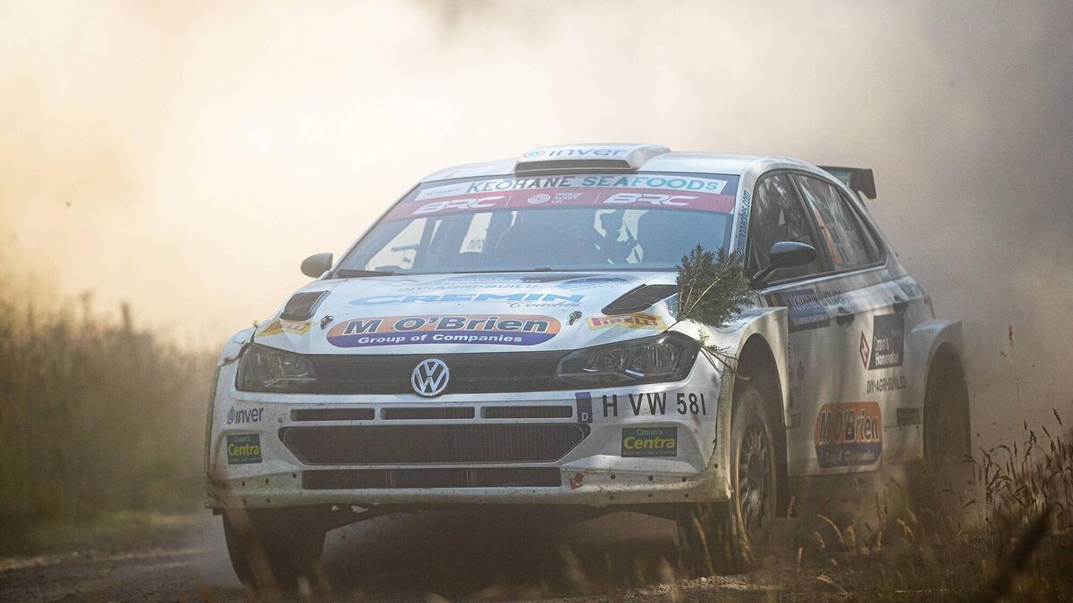 Fastest on all bar one of the six stages, they finished 21 seconds ahead of their main title rivals Welshman Osian Pryce and Killarney’s Noel O’Sullivan, also in a VW Polo GTi R5.