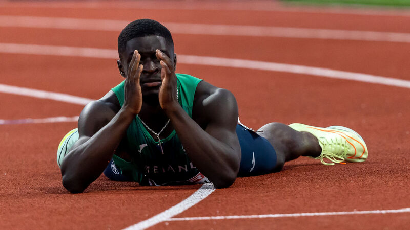 JOY: Ireland’s Israel Olatunde reacts as he qualifies for the final.