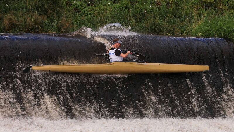 Liffey Descent competitor Phadraig Iomhar Mac Giolla, coming over a wall of water on the Lucan Weir last year.