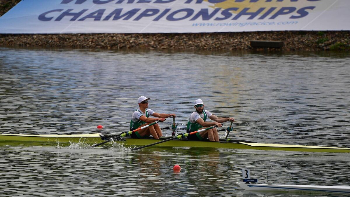 Paul O'Donovan and Fintan McCarthy in the World Championship quarter-final Photo: @WorldRowing