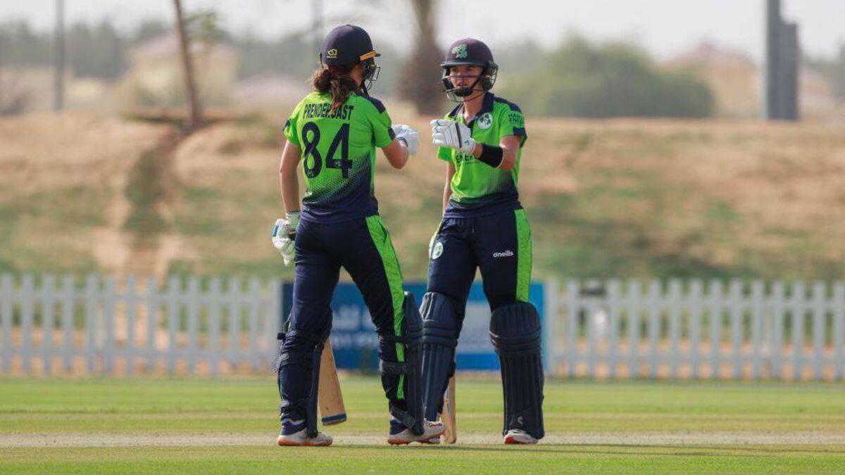 Under intensively hot conditions, Ireland’s Gaby Lewis and Orla Prendergast produced heroic batting performances to inspire Ireland Women to a 19-run victory over Scotland and ensuring a semi-finals berth at the ICC Women’s T20 World Cup Qualifier today.