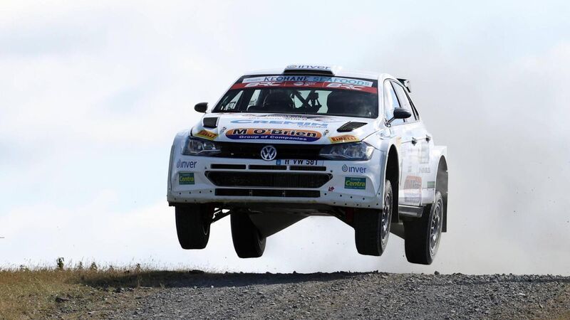 AIR SHOT: Ballylickey’s Keith Cronin and Killarney’s Mikie Galvin (VW Polo GTi R5) finished second in the Nicky Grist Rally in Wales this month.