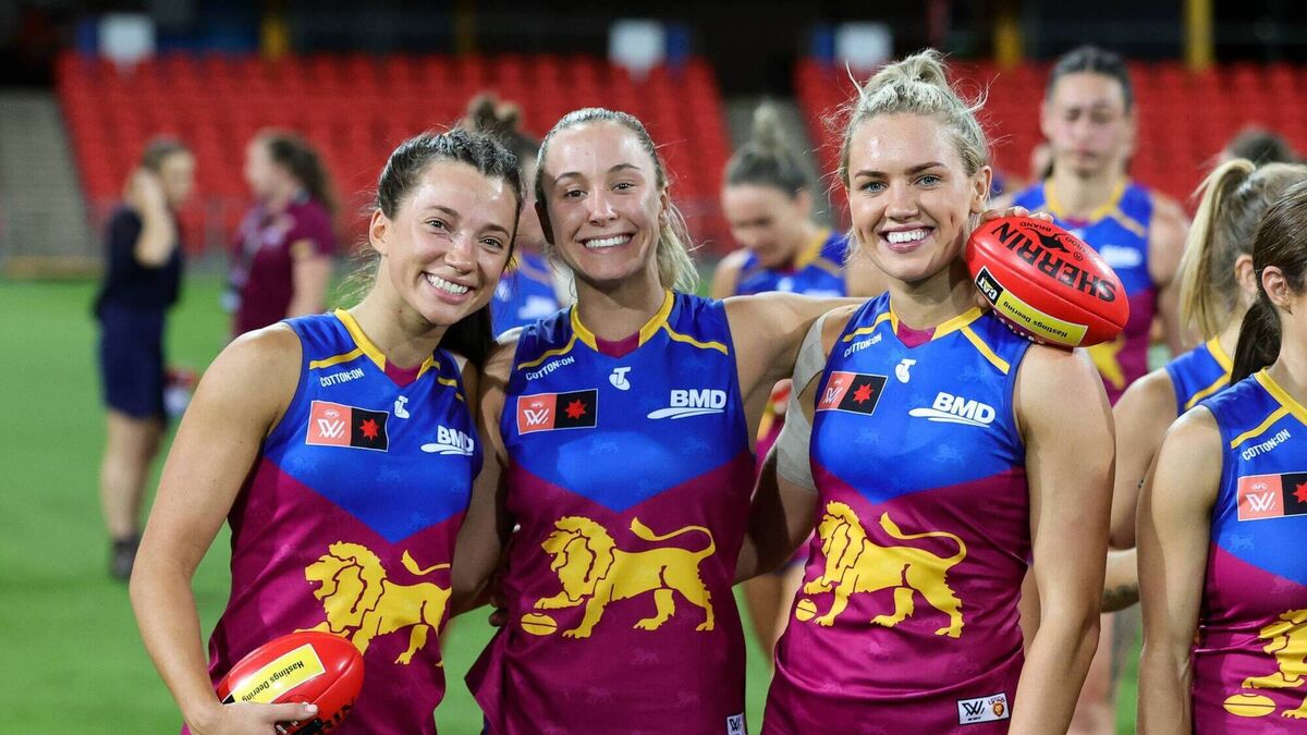 MANE WOMEN: Jade Ellenger, Natalie Grider and Orla O'Dwyer of the Lions. Picture:Â Russell Freeman/AFL Photos via Getty Images