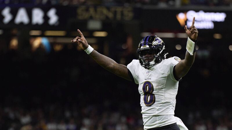Lamar Jackson of the Baltimore Ravens celebrates after a touchdown against the New Orleans Saints. Picture: Cooper Neill/Getty Images