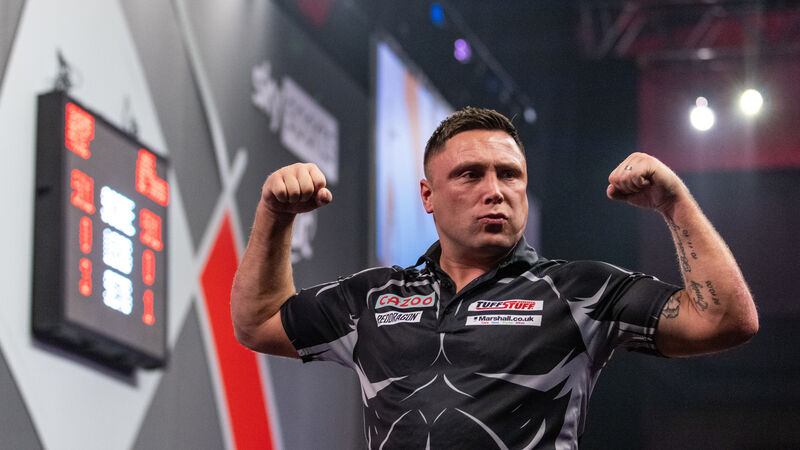 Gerwyn Price became the first place to reach the quarter-finals at Alexandra Palace (Steven Paston/PA)