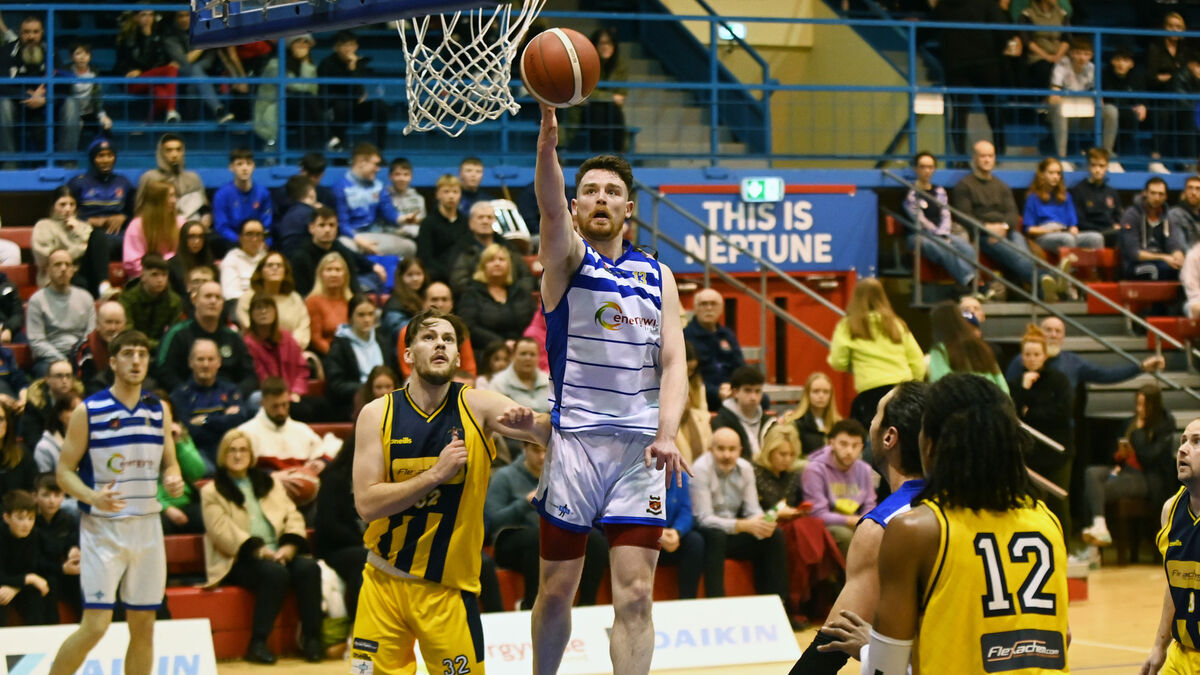 Energywise Ireland Neptune's Jordan Blount lays up a basket from Flexachem Killorglin's Aksels Skaistiauks during the Men's Super League at the Neptune stadium. Picture: Eddie O'Hare
