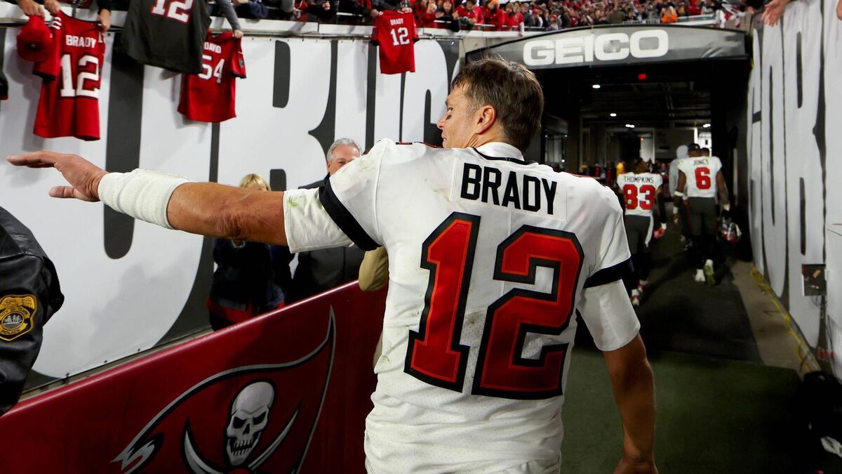OVER AND OUT: Tom Brady #12 of the Tampa Bay Buccaneers walks off the field after losing to the Dallas Cowboys 31-14 in the NFC Wild Card playoff game at Raymond James Stadium. (PIC CREDIT: Mike Ehrmann/Getty Images.