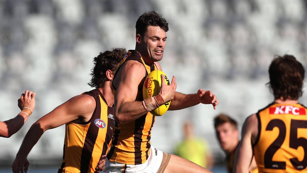 NEXT STEP: Conor Nash of the Hawks marks the ball during the AFL Match Simulation between Geelong Cats and Hawthorn Hawks at GMHBA Stadium on February 23, 2023 in Geelong, Australia. (Photo by Kelly Defina/Getty Images)