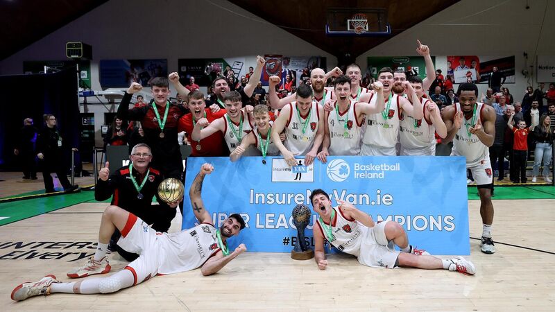 HISTORIC WIN:Â Emporium Cork Basketball players celebrate with the league title. Pic:Â INPHO/Bryan Keane