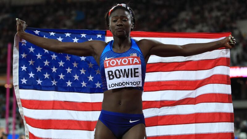 Bowie was also a three-time Olympic medallist and won gold for the United States in the 4x100m relay at Rio 2016.