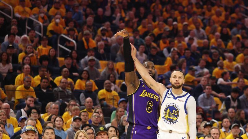 ICONS: Stephen Curry of the Golden State Warriors defends LeBron James of the Los Angeles Lakers. Picture: Ezra Shaw/Getty Images