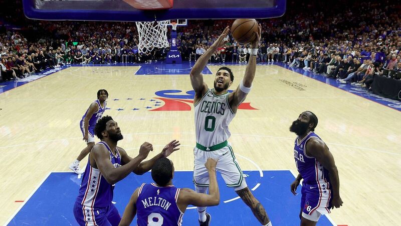 HIGH FLIER: Jayson Tatum of the Boston Celtics shoots the ball against the Philadelphia 76ers at Wells Fargo Center. Picture: Tim Nwachukwu/Getty Images