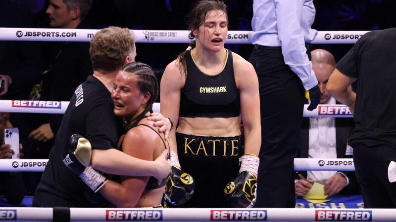 DEFLATED: Katie Taylor reacts after her undisputed Super-Lightweight World Title bout against Chantelle Cameron at the 3Arena in Dublin. Pic: Damien Eagers/PA Wire