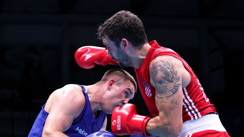 BOB MARLEY: Ireland’s Jack Marley ducks out of the way of a hook from Marko Calic of Croatia this week. Picture: INPHO/Laszlo Geczo