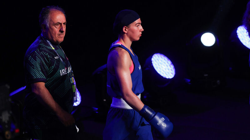 GOLDEN GIRL: Ireland’s Aoife O’Rourke makes her entrance with coach Zaur Antia. Picture: INPHO/Tom Maher
