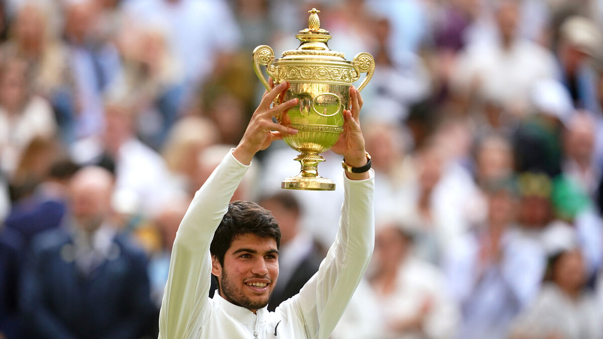 VICTORY SECURED: Carlos Alcaraz with the Gentlemen's Singles Trophy.