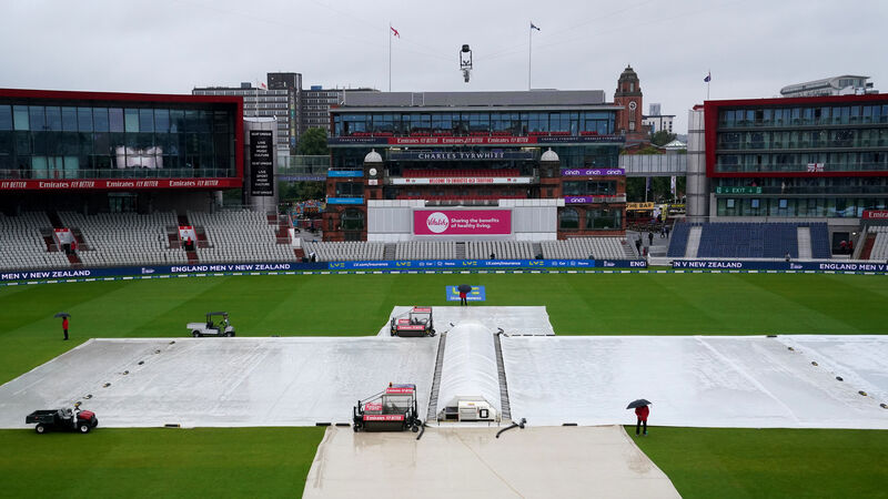 Rain meant a delayed start at Emirates Old Trafford. Pic: Martin Rickett/PA