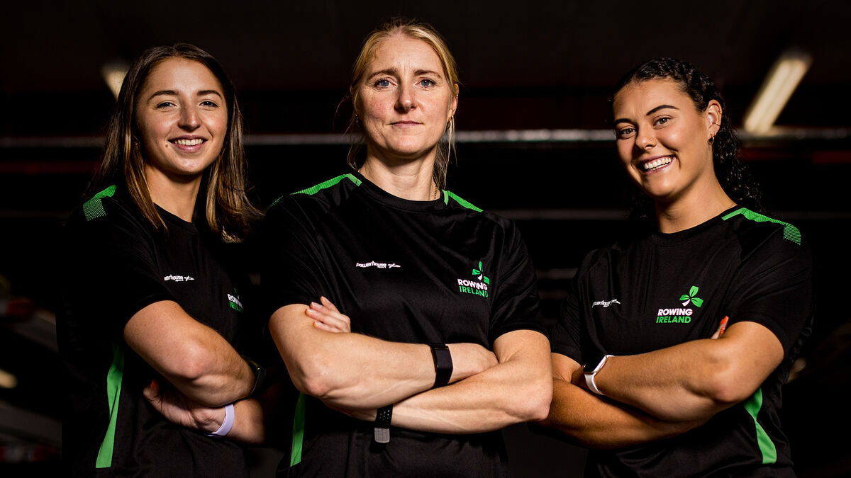 TARGETING MEDALS: Ireland's Zoe Hyde, Sanita Puspure and Alison Bergin preparing for the 2023 World Rowing Championships. Pic: ©INPHO/Laszlo Geczo
