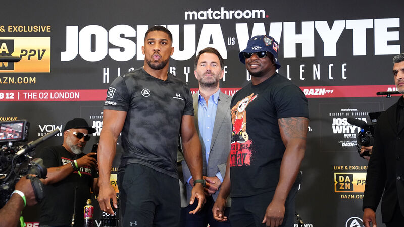 Dillian Whyte, right, was scheduled to take on Anthony Joshua next Saturday. Pic: James Manning/PA