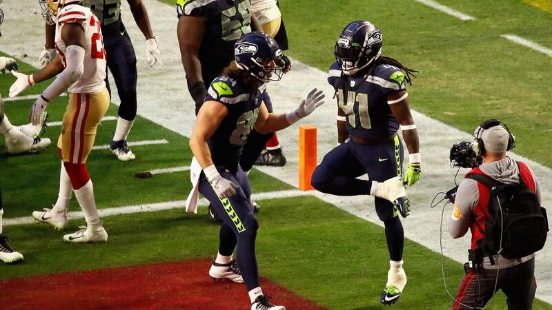 RIP: Alex Collins dances a jig while celebrating a touchdown for the Seattle Seahawks in 2021. Pic: Christian Petersen/Getty Images