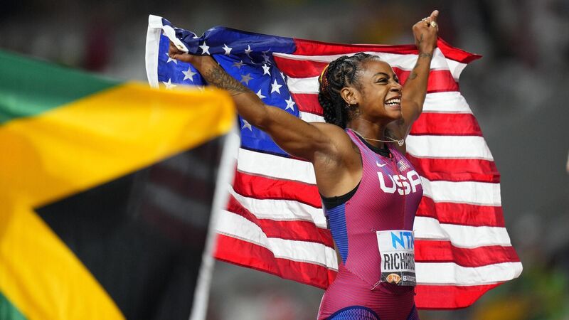 Sha'Carri Richardson stormed to the world 100m title in Budapest as Dina Asher-Smith was left trailing.