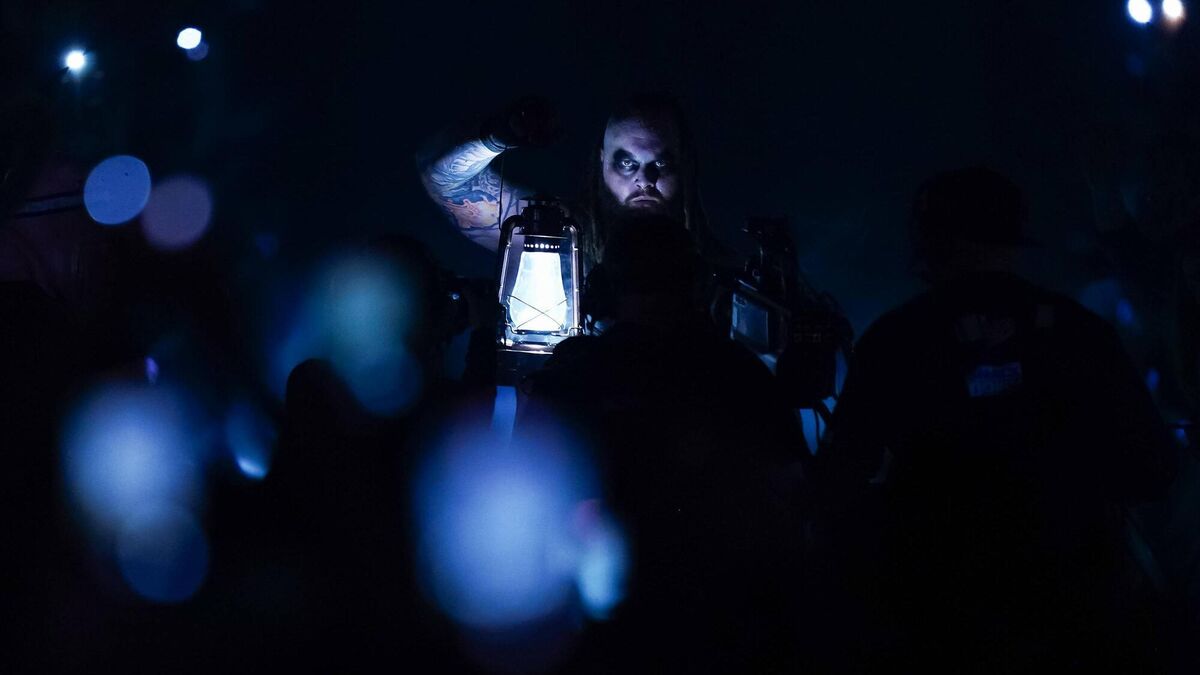 RIP: Bray Wyatt enters the arena to fight in the pitch black event during the WWE Royal Rumble event. (Photo by Alex Bierens de Haan/Getty Images)