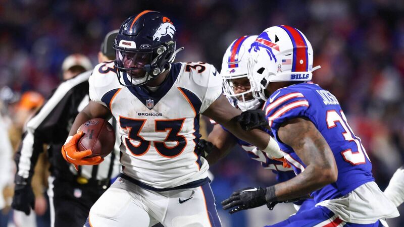SECOND CHANCE: Javonte Williams #33 of the Denver Broncos carries the ball against the Buffalo Bills during the second half at Highmark Stadium on November 13, 2023 in Orchard Park, New York. Pic: Bryan M. Bennett/Getty Images
