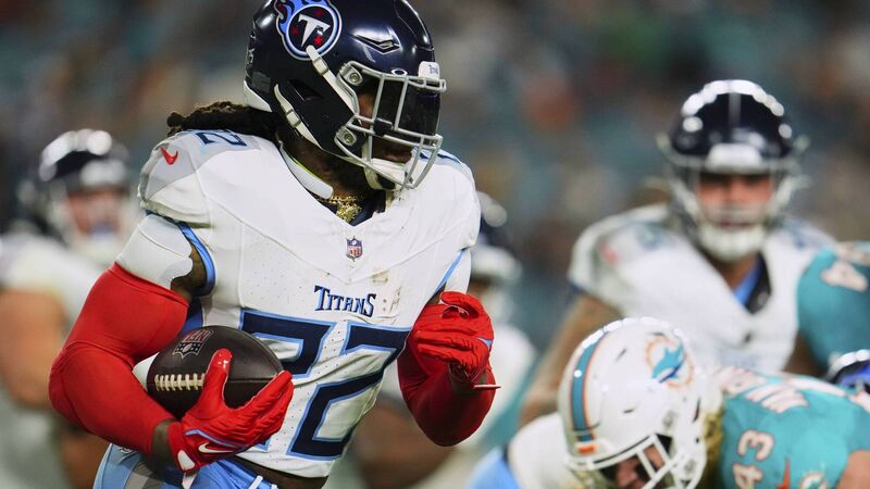 Derrick Henry of the Tennessee Titans carries the ball against the Miami Dolphins. Picture: Cooper Neill/Getty Images